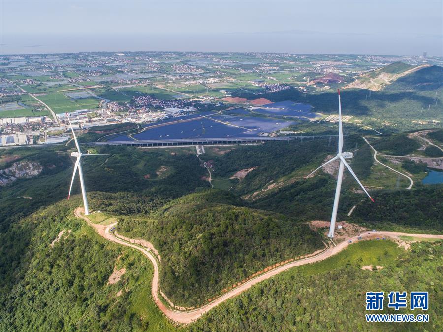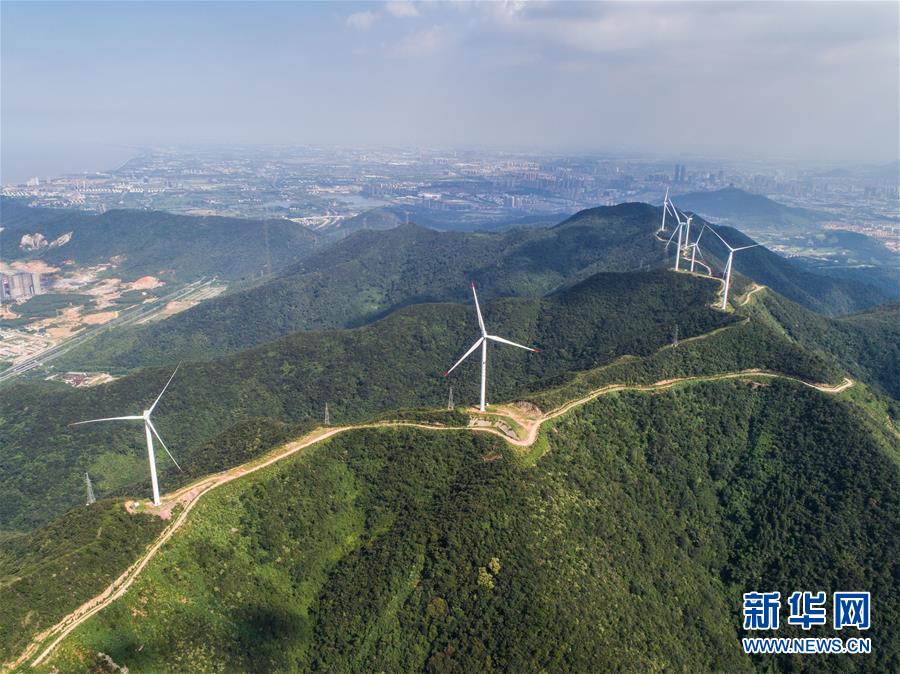 空中俯瞰弁山风电场(8月23日无人机拍摄)。
