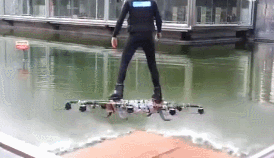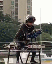 视频中,一男子乘坐一台四旋翼飞行器缓缓升空,在风骚的坐姿下实现了空中平稳悬停、轨迹路线飞行、降落等一系列完美动作......