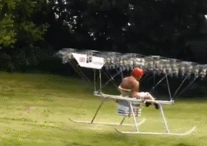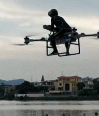 在“上天”的路上,人们想出了各种各样的手段,比如在前不久一段在朋友圈和微信群里被刷爆的“载人无人机”视频。