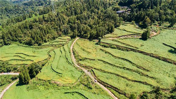 近日,笔者在重庆市黔江区金洞乡早化村,用无人机航拍了千亩瓜蒌种植基地,瓜架下一个个青色的瓜蒌挂满枝头,长势喜人。