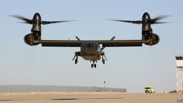 倾转旋翼通过安装在机翼上的一对反向旋转转子克服了这个问题。这种布置有效地将直升机转换为飞机。这种飞机在升空后,使旋翼向前倾斜实现更快速度的飞行,然后将旋翼向上翻转,使直升机实现垂直降落并垂直起飞。贝尔设计的V-280倾转旋翼可以以每小时520公里的速度飞行(根据飞行员的说法是每小时280海里,因此其得名V-280)。这款飞机在搭载四名机组人员和14名全副武装人员的情况下,续航里程也达到了近1500公里。