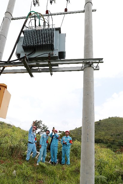 册亨供电局“心意电”服务队对光伏发电站的备用线路设备进行巡检服务。(卢关文 摄)