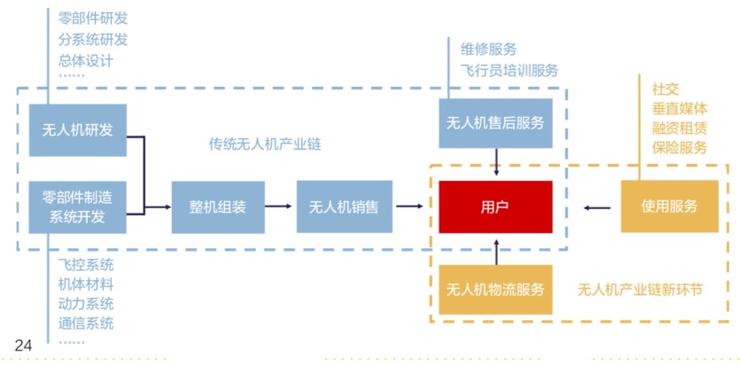 刘艳光表示,京东从研发、零部件到整机组装、整机销售实际上已经有相对成型产品,而在此之后的无人机销售、售后服务、用户端的培训和管理,以及京东通过为用户提供更深层次的物流服务的无人机产业链上新环节,未来需要进行探索和规范。