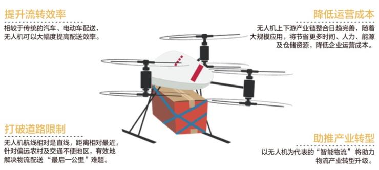 助推产业转型:以无人机为代表的“智能物流”将助力物流产业升级转型。
