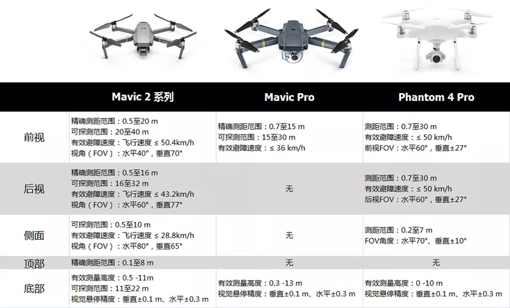 除了数量上的优势以外,Mavic 2系列的各种探测“质量”也上一代产品好得多。Mavic 2系列采用了更大的视觉摄像头,分辨率有所增加,极大的提高了无人机的安全系数。