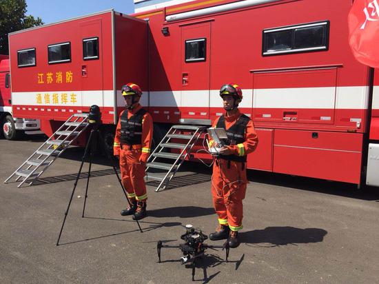 在此次增援山东寿光排涝救援中,为了寻找最好的图像传输点,江苏消防应急通信保障前突分队的官兵们每次都带着通信设备站水里,顶着暴雨或烈日,一干就是4至5个小时,全力保障作业的顺利开展。