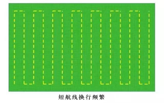 在规划航线时,航线长度越长越好。众所周知,植保机作业换行的过程相比正常航线飞行要慢很多。频繁换行会导致浪费时间与电量。所以,为了提高作业效率,降低作业成本,规划航线时应尽量以长航线为主。