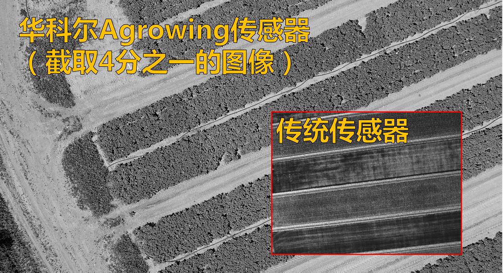 ▲同样90米的高度下,华科尔Agrowing传感器和传统传感器的图像对比