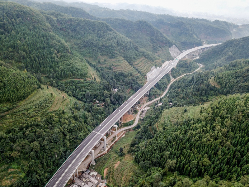 这是贵州织普高速织金东至普定路段(8月31日无人机拍摄)。