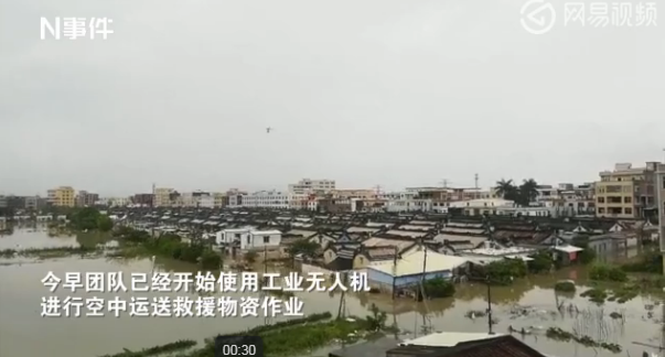 9月1日,广东汕头,由于连日暴雨,部分地区内涝严重,灾民被困“孤岛”。今早,一无人机运输团队到达潮南司马浦,使用无人机进行空中运送救援物资作业,为救援船只无法到达地区的群众送去物资。据汕头市应急办,截至9月1日8时,汕头暴雨受灾人数已达87.9万。