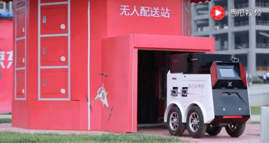 今年7月初,京东集团董事局主席兼CEO刘强东在社交媒体上公布了一段视频,宣布京东无人配送站研发成功。据视频介绍,该无人智慧配送站提供全时段寄件服务,扫码开箱及自动称重,其终端可存储至少28个货箱,具有1个发货箱,能存放1辆终端无人车并为其充电,可实现真正的全程无人配送中转。