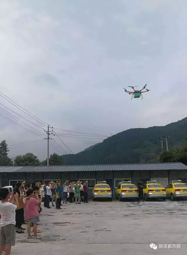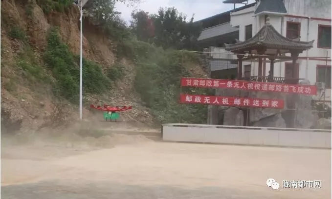中庙镇无人机投递邮路的开通,