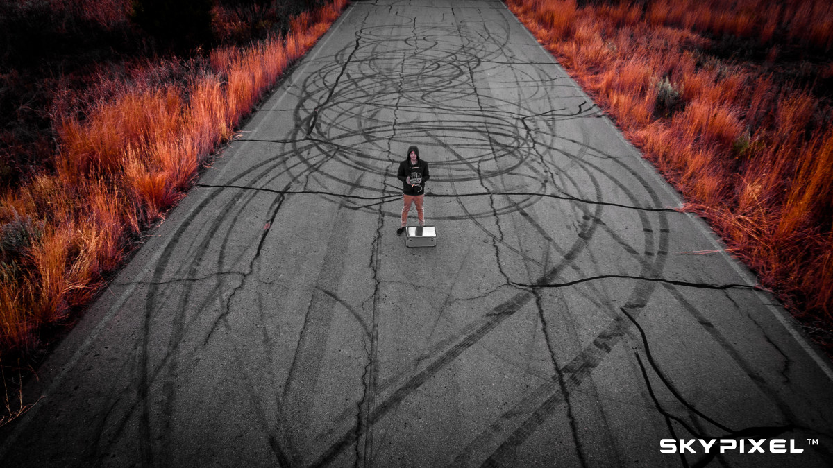 入门级的操作,就是将无人机起飞后悬停在某个位置,然后滑动遥控器左上肩的波轮,将摄像头对准自己。如果不想手上的遥控器出镜,就要找准可以把它藏在身后的角度。