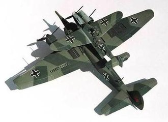 其实“空中母舰”并不是什么新鲜的概念,从大飞机上释放小飞机的设想早已出现。自从航母出现并称霸海洋之后,就有无数人对这种“浮空机场”念念不忘。上个世纪30年代-50年代,美、苏、德等航空强国纷纷进行“航空母机”的研制。1931年首飞的苏联Zveno-1“子母机”(或称寄生机),由一架TB-1轰炸机搭载两袈I-4战斗机。在美国,1932年6月,寇蒂斯公司将AKRON号和MACON号飞艇改装成载机飞艇。分别可以携带3架和4架P-12战斗机,并且还参加了一次大型海空演习。在50年代初,B-36“和平缔造者”重型轰炸机服役后,美国也进行了“Tom-Tom”计划(将 F-84 战斗机直接挂在 B-36 机身下发射和回收,以增强远程轰炸机的空中防御能力)。德国在二战期间也开发了“榭寄生”飞机,采用和无人版JU-88背驼一架FW一190的组合。