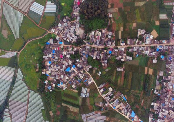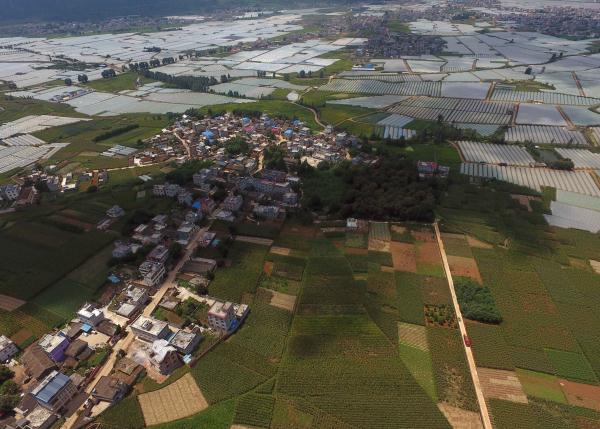 云南寻甸县羊街镇水井村景色(9月1日无人机拍摄)。