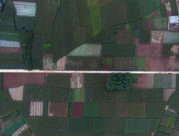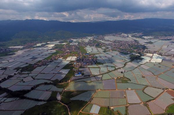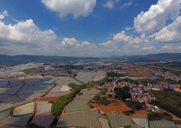 入秋后,云南省寻甸回族彝族自治县羊街镇的田野里处处呈现色彩斑斓的丰收美景。