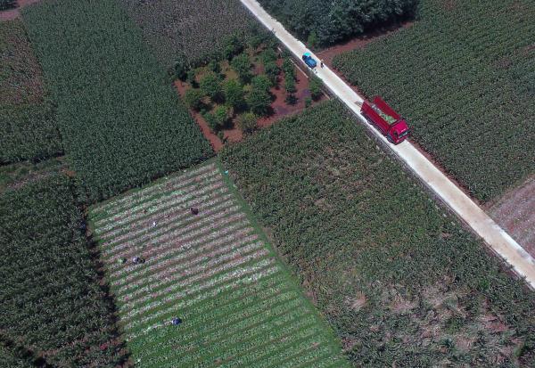 云南寻甸县羊街镇乡村田园景色(9月1日无人机拍摄)。