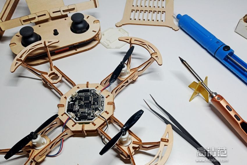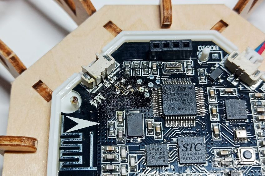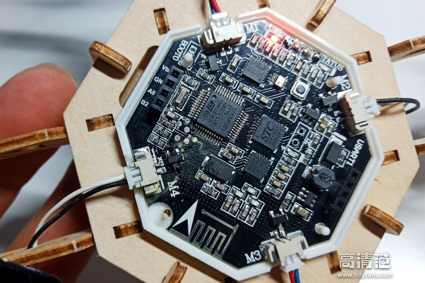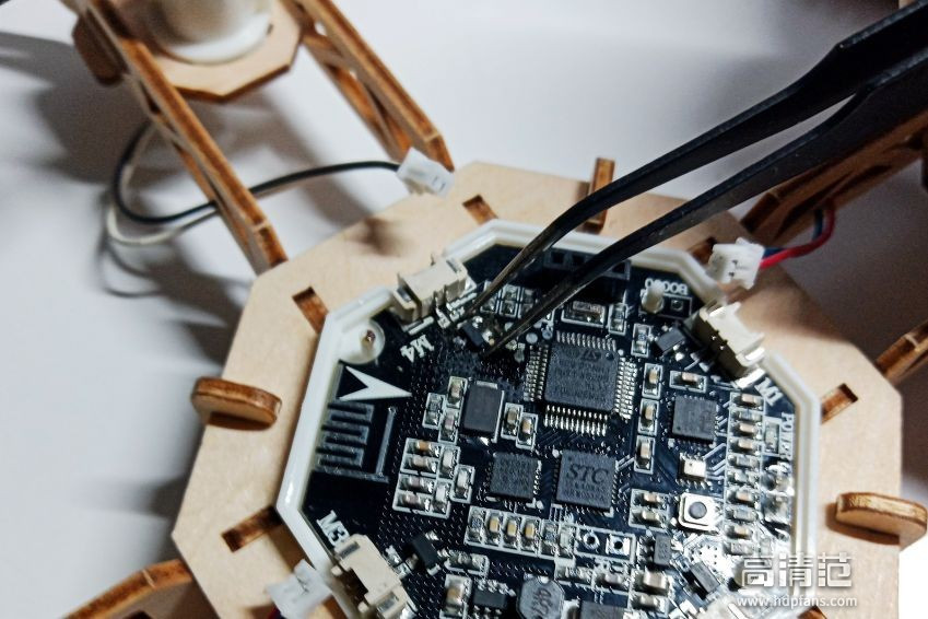 下面,就可以将电机安装到位。将电池插到线路板后,还要再次检查有没有异常发生,芯片有没有发烫等情况。