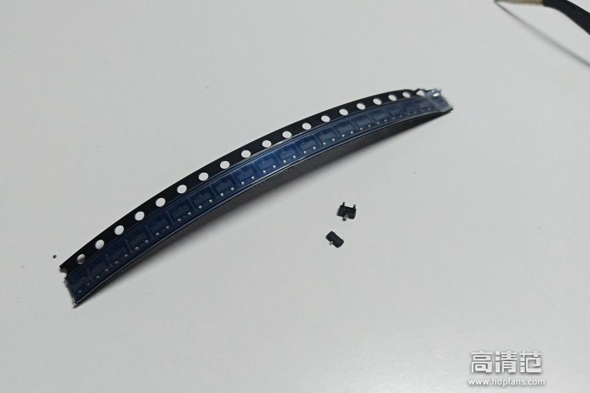 两天的等待,终于收到货了。因为批次不同,新买到的贴片比原装的体积还要小。当然,三个管脚的位置是一样的。
