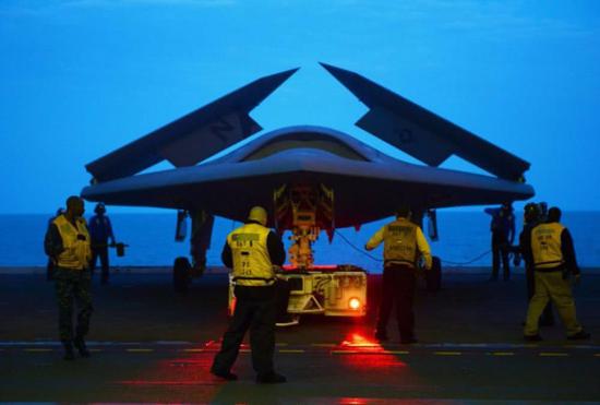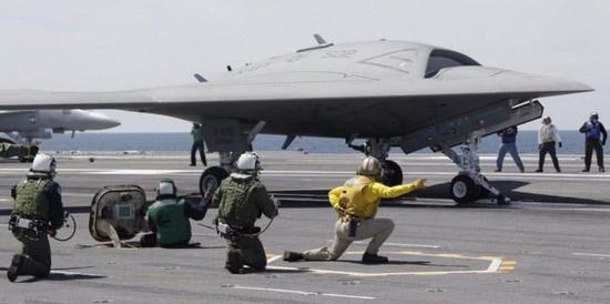 舰载的大型喷气式隐身无人,要想执行复杂作战任务,涉及态势感知和数据链整合等一系列问题,是技术含量极高的项目。2013年7月11日,X-47B无人舰载攻击机成功地降落在布什号航空母舰上,起降试验的圆满成功。2015年4月,美国海军X-47B验证机与一架加油机对接,成功实现自主空中加油。这说明先进无人机的航母起降和空中复杂操作,已不存在技术困难,此时大批的美国媒体标题直接就是“颤抖吧!人类!”。