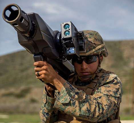 资料图片:美军陆战队员试用“天障”反无人机大炮。(图片来源于网络)