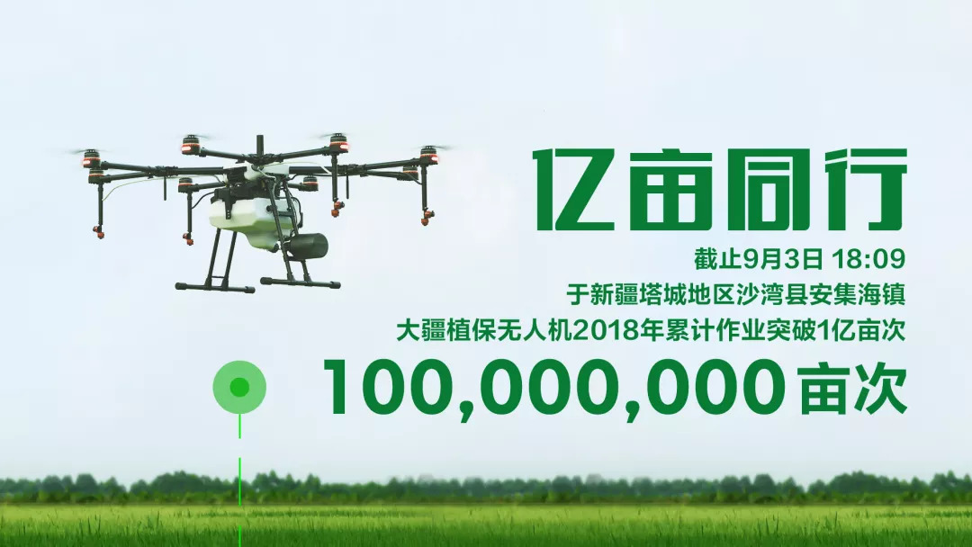 此时此刻,大疆植保无人机 2018 年国内累积作业面积正式突破 1 亿亩次。而随后,结合这次亿亩数据里程碑,大疆农服正式发布了《亿亩同行》无人机植保数据报告。