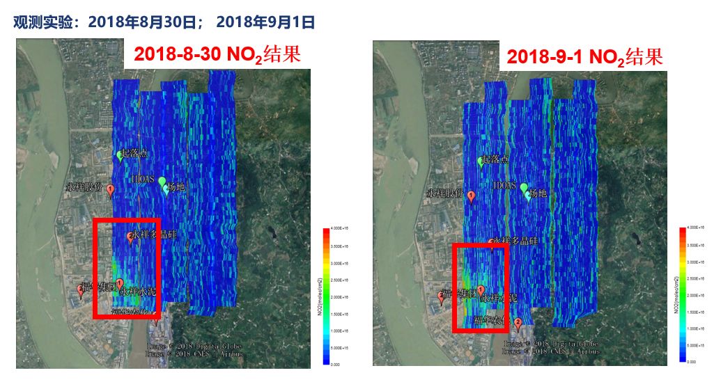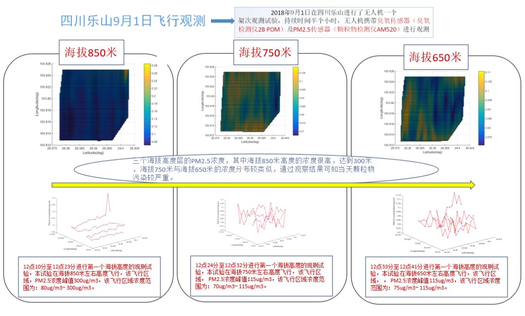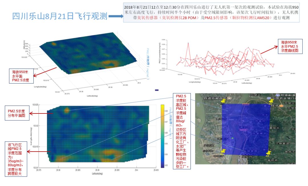 在四川乐山五通桥区,项目组分别利用CW-30搭载大气气体检测传感器和小型化高分辨成像污染气体二维成像(DOAS)探测系统进行空气污染走航观测,各飞行11架次和7架次,测区地面海拔350m,航高300-600m。