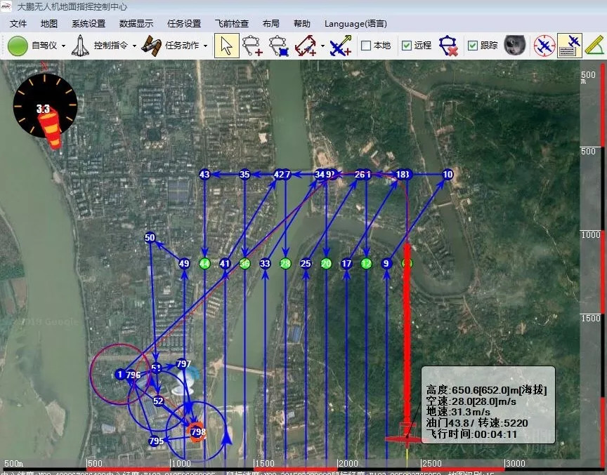 CW-30搭载大气气体检测传感器的飞行航线如下: