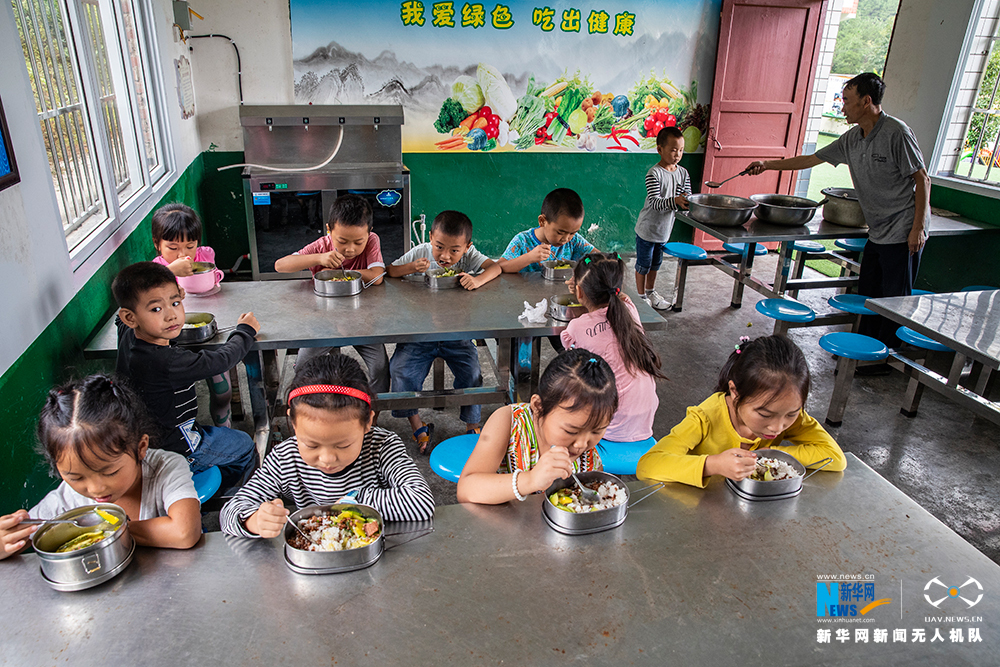 9月6日,重庆市南川区大有镇水源村侨心小学的学生们吃午饭。新华网发(瞿明斌 摄)