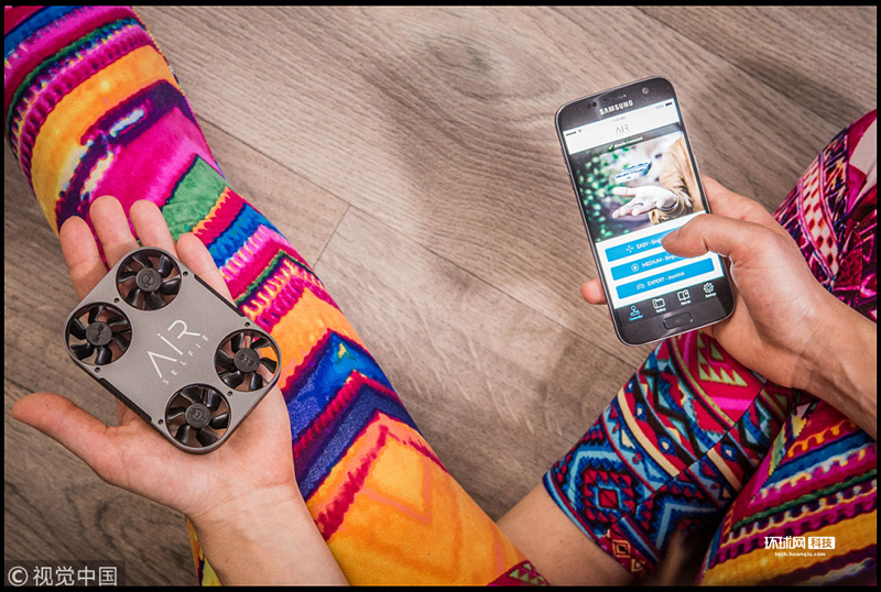 当地时间2018年8月26日,英国,无人机新创团队AirSeflie推出了一款用于自拍的无人机。这款自拍无人机只有手掌大小,通过智能手机下载一个应用程序便可进行控制。这个自拍无人机采用了四螺旋桨结构,续航时间为5分钟。
