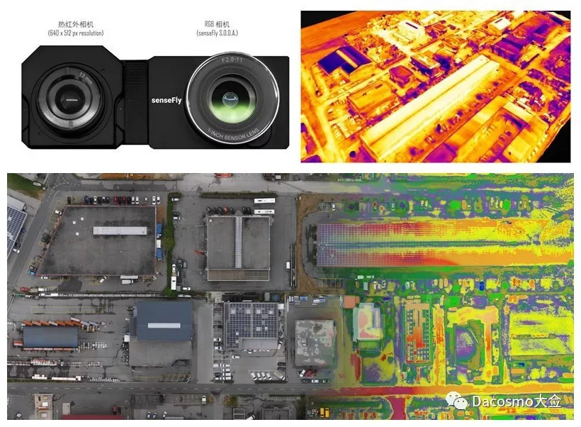 senseFly Duet T:双摄像头热绘图装置,可让地图专业人员快速轻松地创建地理精确的热图和数字表面模型。Duet T包括高分辨率(640 x 512 px)热红外摄像机和带有1英寸传感器的senseFly SODA RGB摄像机。可以根据需要访问两个图像源,而钻机的内置摄像头位置同步功能与Pix4Dmapper摄影测量软件(可选)同步,以简化地图重建过程。