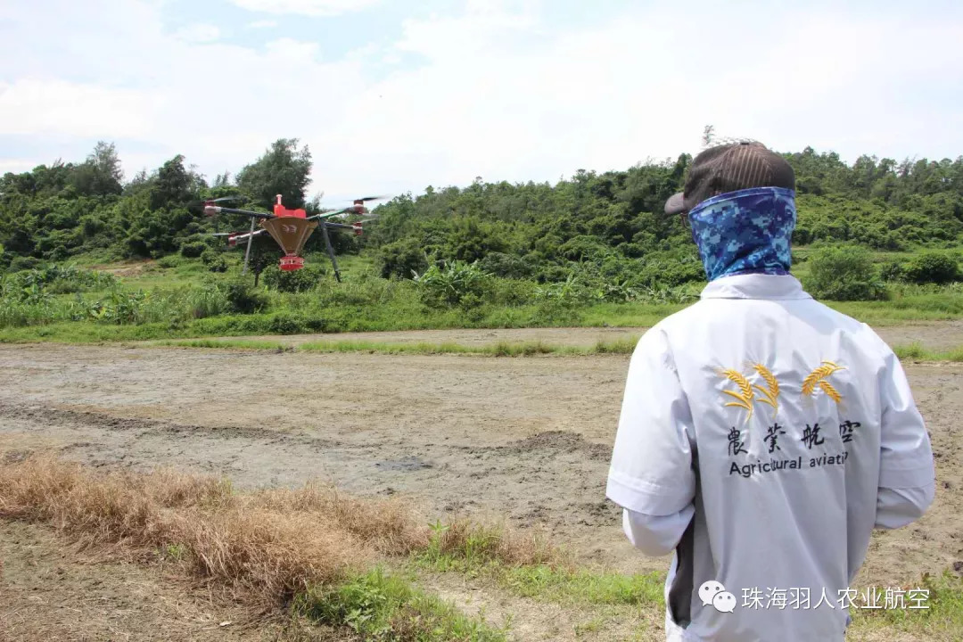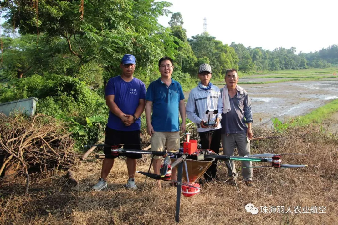 此次植保作业中,谷上飞播种无人机3WDM8-20发挥非常重要的作用,播种无人机在飞手操作下,缓缓升至稻田上空开始精量播撒水稻种子,仅仅几分钟就将优质水稻种子均匀播撒完毕。台山大耕户在现场一起观摩了羽人播种无人机进行水稻种子飞播作业,并现场检验水稻种子飞播情况。省时省力效率高、飞播均匀获得大耕户的认可。