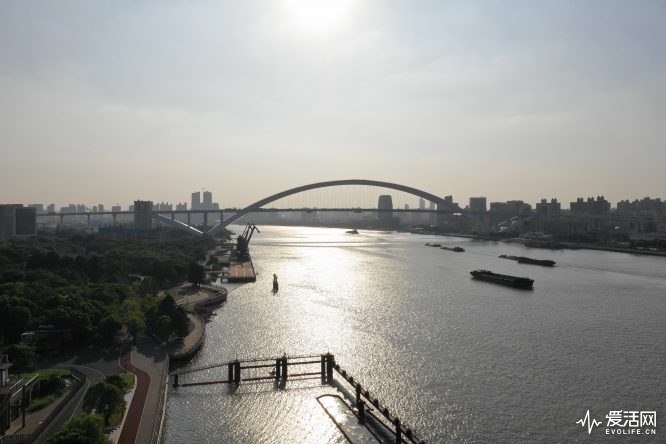在面向卢浦大桥拍摄江景的这张照片就是典型的高光对比场景,可以看到江面波纹在日光下都得到了最大程度的保留,而画面左边的那片树林也没有出现大块的死黑,绝大部分都还能看得清枝桠产生的轮廓,对岸建筑物的涂抹感则稍微重了一些。