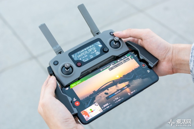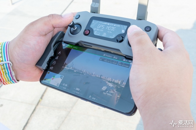 遥控器成为了操控Mavic 2 Pro飞行的唯一选项,飞Spark,或者以往的两款Mavic你也许可以偷懒为由直接用手机虚拟摇杆上了,Mavic 2 Pro说不行,连接过程中手机连接遥控器是必须的一步,无法跳过。