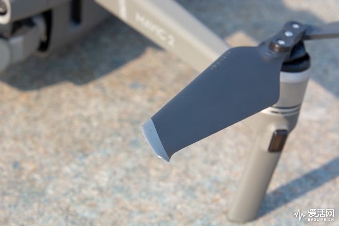 Mavic 2 Pro最后一个在机身硬件上的可视改动在于螺旋桨,大疆称为了改善飞机的气动性能,并降低螺旋桨的工作噪音,对螺旋桨的尖端做了一个细微弧度的上翘。在实地飞行环境里降噪的实际效果并不好体现,主要还是目视无法测定飞行器与自己之间的距离,在起飞到20米左右高度的地方(app测定)Mavic 2 Pro的旋桨声还是清晰可辨,再往远拉就慢慢听不见了。