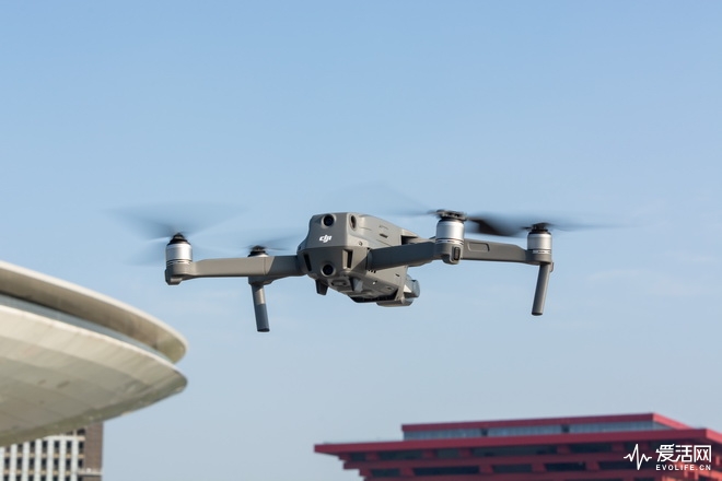 而在比较广阔的城市建筑群里,在环绕一个兴趣点进行飞行的时候,飞机也会自行调整自己的飞行轨迹,避免拍摄移动中撞击高楼,而不像以往机型那样缺乏左右后视的能力会直接碰撞障碍物而炸机,在环绕中国馆飞行时,Mavic 2 Pro就自己升高了飞行高度避免撞上行进路线里的建筑物。