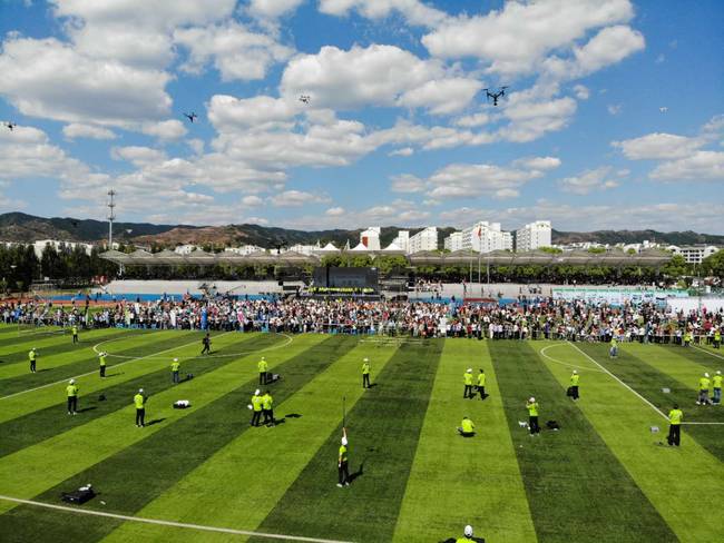 环环也是第一次看到这么多架无人机同时飞行,抬头即见无人机的感觉很像科幻电影中的场景。据介绍活动聚集了上百架无人机,此次航拍大赛规模之大、规格之高、参与人数之多,在华北地区都尚属首次;合法飞行、政府主导、央媒指导在全国也是首次。