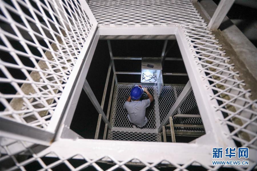 9月11日,工作人员在“中国天眼”圈梁上工作。 新华社记者 刘续 摄