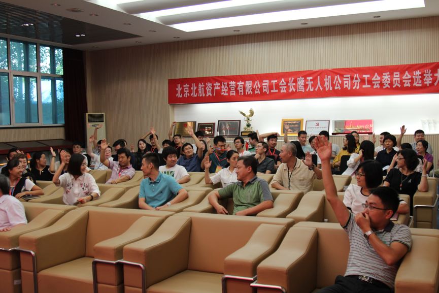 金秋送爽,丹桂飘香的时节——2017年9月6日16:00,第一届北航资产经营有限公司工会长鹰无人机公司分工会委员会选举大会在无人机楼总装厂房车间接待室隆重举行,会议由第三党支部支委谢占明主持,资产公司副总经理、工会主席白致铭莅临指导,来自分会的50名会员代表参加了此次选举。