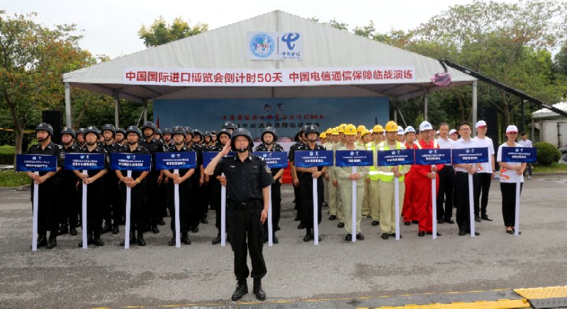 汇聚全球精彩、体现责任担当。9月12日,在首届中国国际进口博览会这一“全球精彩”盛会倒计时50天来临之际,“中国电信通信保障临战大型演练”在沪举行。中国电信上海公司的38台各类应急通信专业装备,15辆应急通信及救援车辆,1架“中国电信应急通信飞行队”保障直升机、4台专业侦查(系留)无人机、数百名电信应急通信队员参加了演练。现场通过“大网实战”、“应急处置突发情况”两大类十种真实网络场景,实时展现了在首届中国国际进口博览会期间,中国电信勇于担当的社会责任,和强大的通信保障及应对各种突发事件的处置能力。