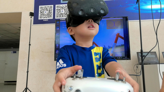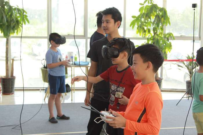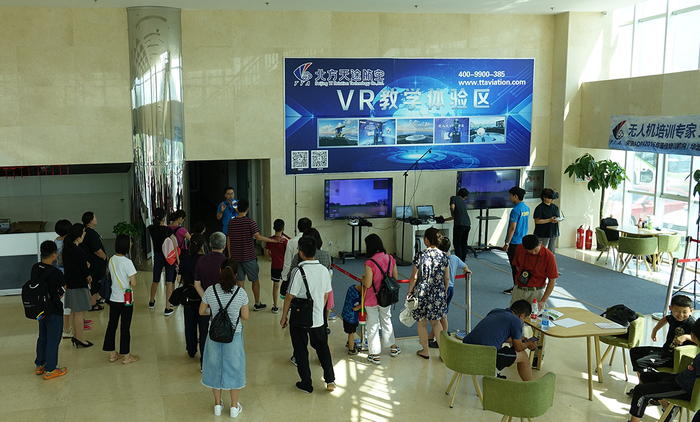 首先大家参观了天途无人机展厅,通过VR虚拟现实技术体验无人机的精彩飞行。