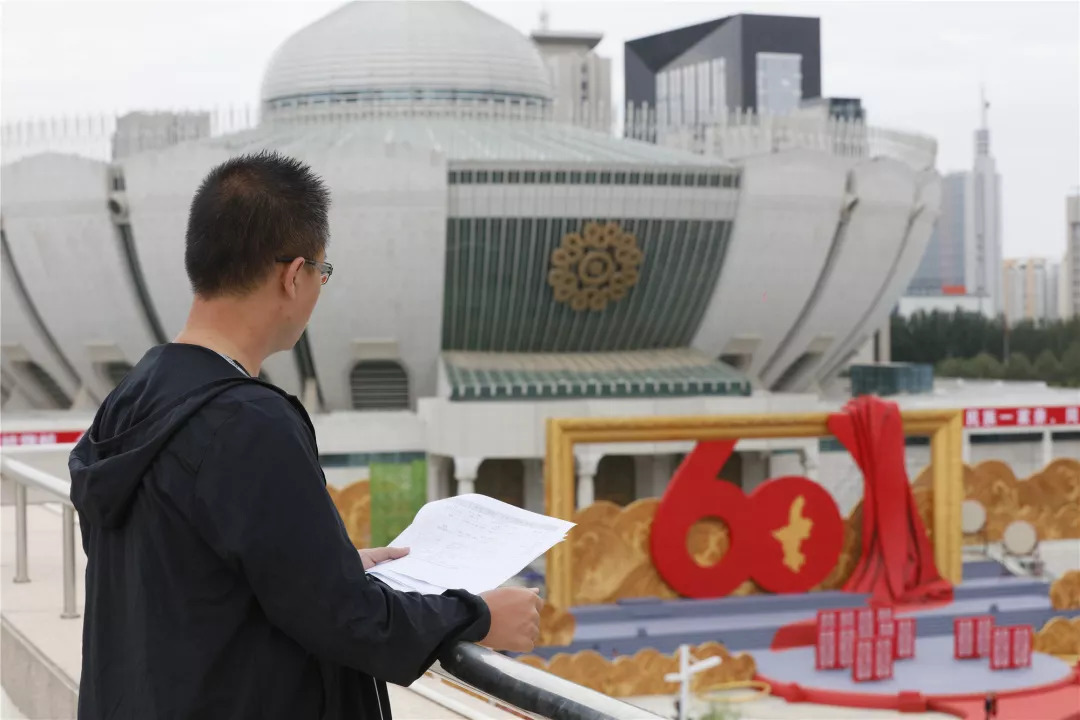 为了呈现出精彩的表演,团队提前几天就来到了银川做调试工作,负责程序调试的工程师也得到了大自然的“馈赠”——黝黑的皮肤
