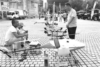 9月7日,在河南省驻马店市举行的第21届中国农洽会上,来自深圳的高新科农公司,展出了国内首款16L电动单旋翼智能植保无人机。