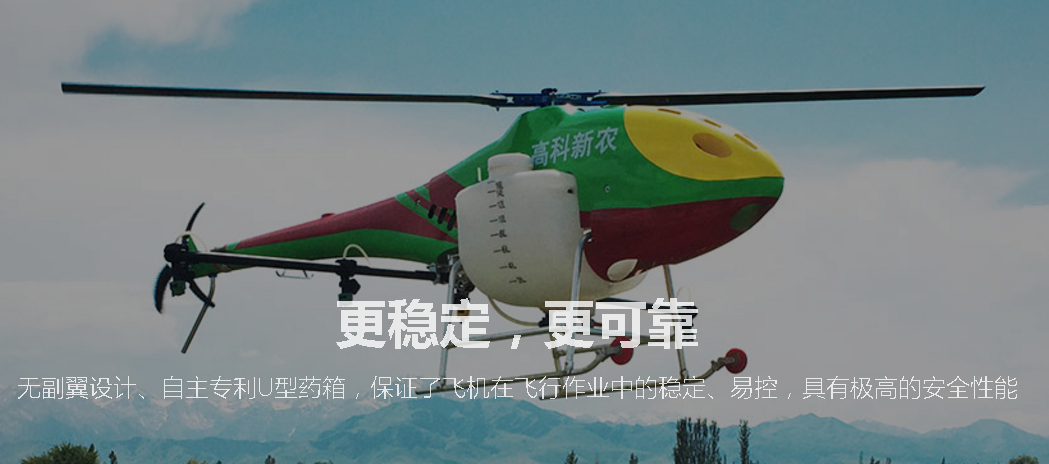 主打效率、性价比、长航时、大载荷的高科新农,在这款机器上得到了充分的体现。U型的药箱保证了飞行的稳定性,简介的单旋翼式设计,在锂电池提供动力来源的前提下达到了35分钟的续航时间。众多农户在使用植保机的时候对于这些条件都是挺看重的,在实际作业中也会带来事半功倍的效果。