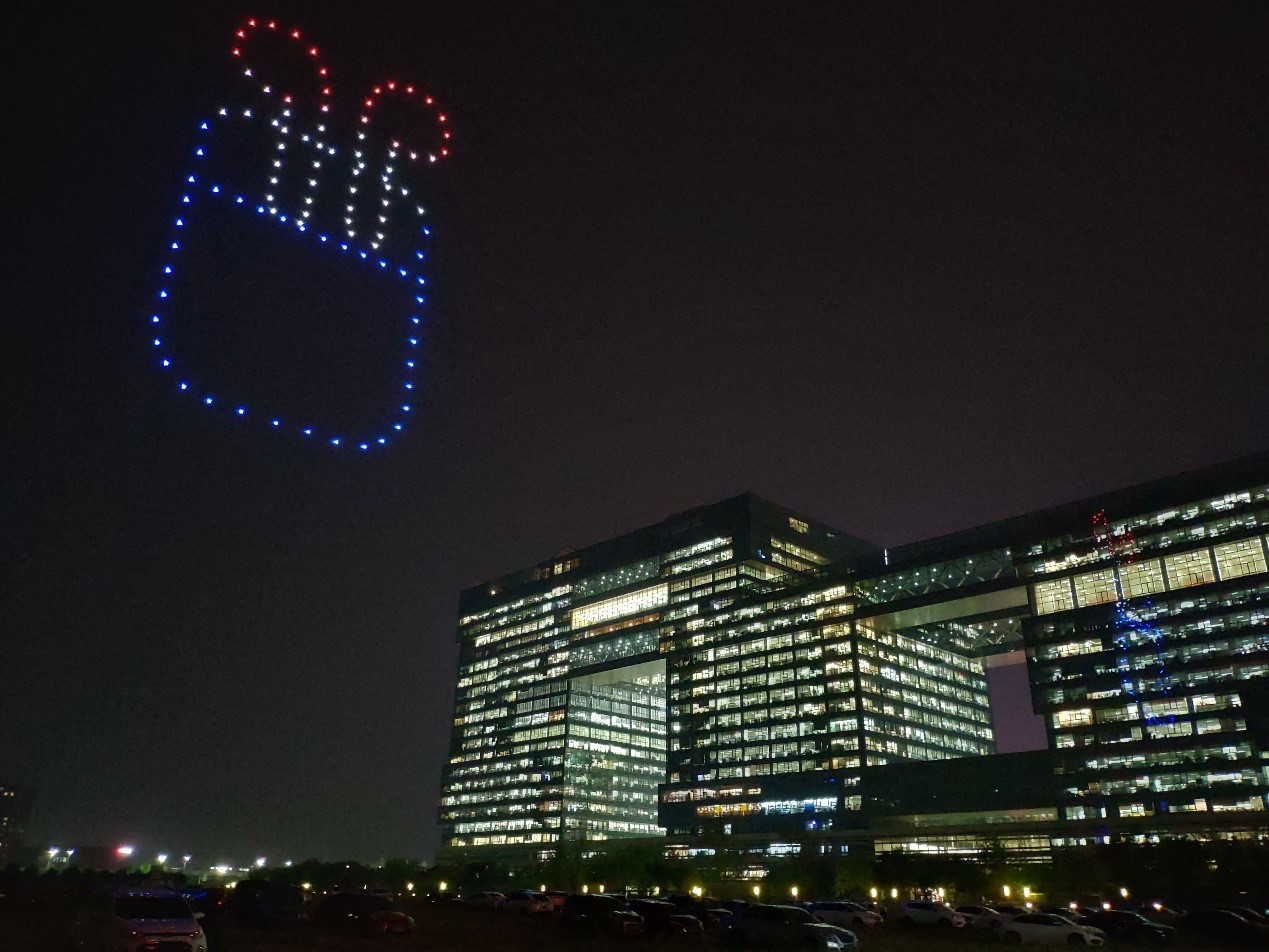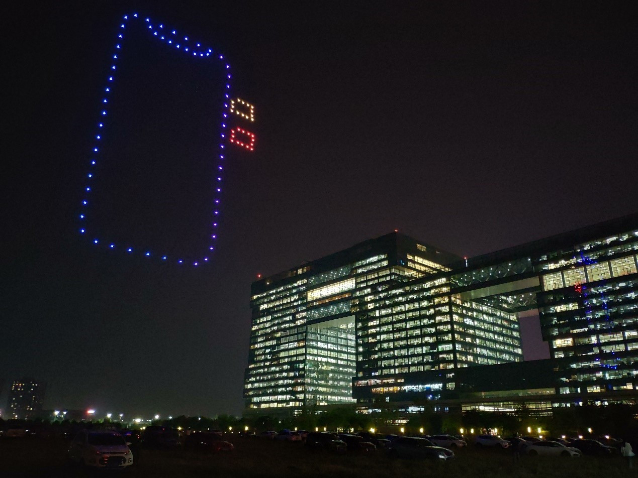 除了展示出京东即将发售的Apple一众新品,此次无人机编队还大秀了一把京东独家的一站式服务——“京享无忧”,颜色变幻闪烁的标语在空中久久停留不休,将京东要为Apple用户提供最全面服务的决心展现得淋漓尽致。