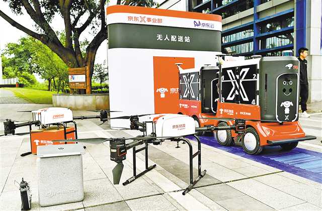 京东集团有关负责人介绍,京东无人机可以抓取约10公斤左右的货物,电池续航时间约50分钟,可以飞10公里以上。而京东无人车可以实现自动驾驶、规划路线,还能识别、躲避障碍物、辨别红绿灯等,它主要服务于最后一公里的快递配送服务。