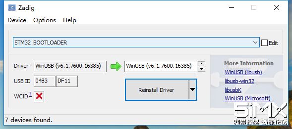 点击Options—List All Devices然后会看到一项STM32 Bootloader,选择
