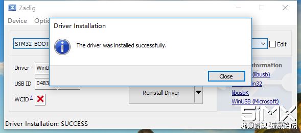 然后点击大按钮Reinstall Driver,接下来出现一个进度条,走完之后会提示成功
