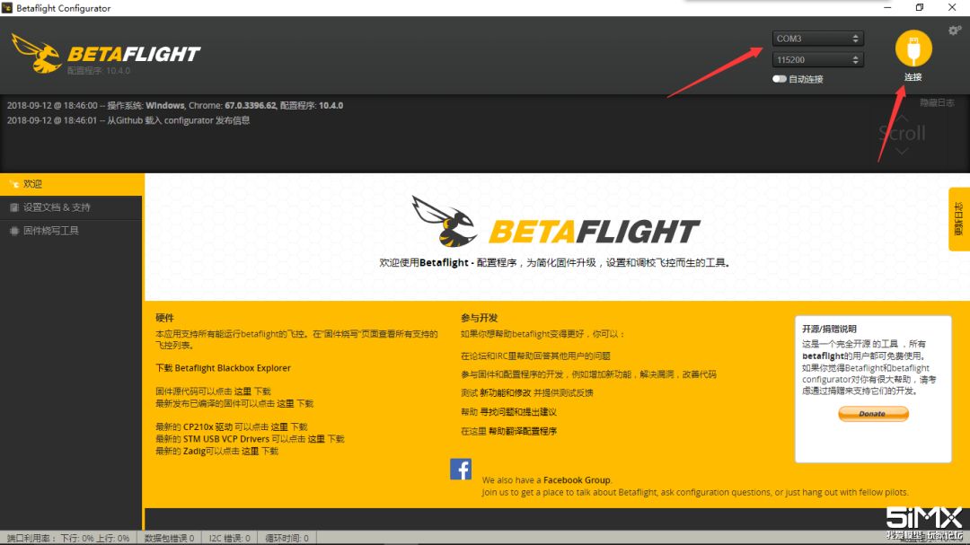 进入BF配置器,端口选择COM3,点击连接,此时你就可以开始设置飞控了