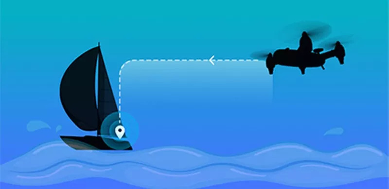 普通飞行器会在起飞时自动记录返航点,当遇到通讯中断、电量不足或收到返航指令时,将自动返回发射点。雨燕防水无人机则可以在飞行过程中根据用户的位置动态调整,返回到远程控制器的位置。就算身处一艘移动的船上,它也能自动返回到你的身边。